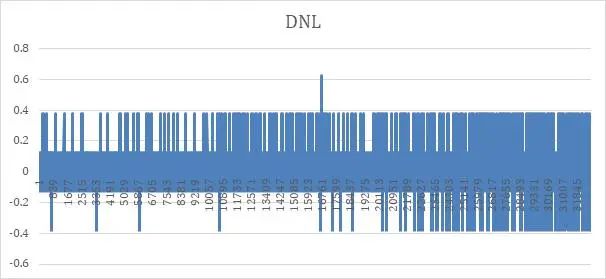微分非線性度,體現(xiàn)了ADC測量直流信號的線性度水平,規(guī)格要求小于±1 LSB。