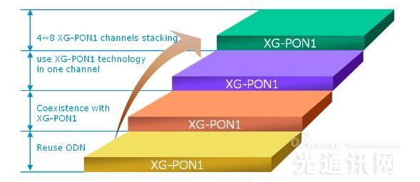 TWDM-PON技術(shù)就是將波分復(fù)用機(jī)制和現(xiàn)有PON光網(wǎng)絡(luò)中的時(shí)分復(fù)用機(jī)制相融合,即充分利用光纖的超高容量,將若干個(gè)10G GPON波長通過波分復(fù)用技術(shù)聚合到一個(gè)通道中。換句話說,NG-PON2技術(shù)是建立在10G PON技術(shù)之上的,這也從另一個(gè)側(cè)面反映出了10G PON技術(shù)的關(guān)鍵性。正是如此,NG-PON2能和現(xiàn)有的10G PON完全兼容,這也意味著可以實(shí)現(xiàn)簡單、平滑、經(jīng)濟(jì)的技術(shù)演進(jìn)。通常情況下,針對不同的應(yīng)用需求,通過堆疊4個(gè)或8個(gè)、甚至更多的10G PON波長來實(shí)現(xiàn)按需升級(jí)或者帶寬提速。在用戶側(cè),NG-PON2的無色ONU使用可調(diào)諧光收發(fā)器來保證無論在哪個(gè)波長下,ONU均能正常工作。