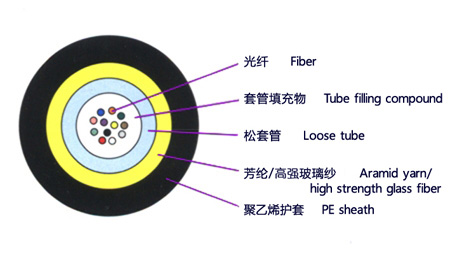 這種結(jié)構(gòu)國外用得很多,在裝有光纖的束管外加上玻璃纖紗(或芳綸、高強紗)后擠上護套。光纜比較柔軟,具有一定拉力,室內(nèi)外通用。架空,穿管都比較方面。