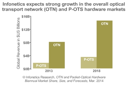 ICCSZ訊 2014年3月10日,市場(chǎng)調(diào)研公司Infonetics發(fā)布其最新的關(guān)于OTN(光傳輸網(wǎng)絡(luò))和分組光硬件市場(chǎng)報(bào)告,以分析OTN交換和傳輸設(shè)備,以及分組光傳輸系統(tǒng)(P-OTS)市場(chǎng)情況。