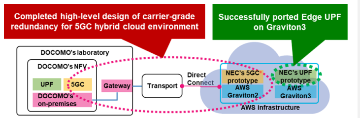 DOCOMO和NEC還成功接入了NEC的5G用戶(hù)平面Function1軟件,專(zhuān)用于AWS Graviton32處理器上的邊緣計(jì)算(edge UPF)。該驗(yàn)證預(yù)計(jì)將支持物聯(lián)網(wǎng)用例中5gc和Edge upf的更快建設(shè)和降低能源消耗。