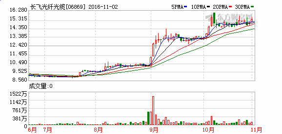 2016下半年,長飛的股價在港股受資金追捧,曾一度飆升至16.28元,不過即便股價比半年時間大漲超過80%,其市盈率也才15倍左右,相比內(nèi)地的亨通光電25倍、烽火通信38倍還是較低的水平。