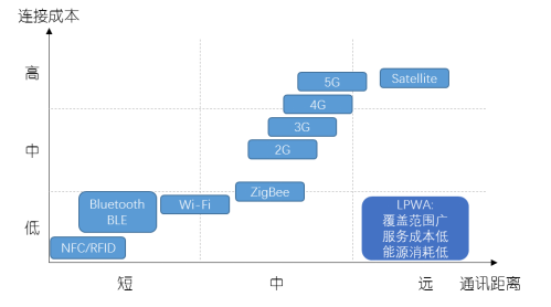 圖1:主要通訊技術(shù)的覆蓋范圍及連接成本