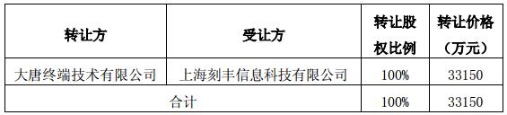 經(jīng)履行北京產(chǎn)權(quán)交易所公開掛牌相關(guān)程序,近日,大唐終端技術(shù)有限公司與上??特S信息科技有限公司簽署《產(chǎn)權(quán)交易合同》,大唐電信將全資子公司終端技術(shù)持有的上海優(yōu)思和深圳優(yōu)思 100%股權(quán)轉(zhuǎn)讓給上??特S信息科技有限公司,轉(zhuǎn)讓價格為 33,150 萬元,具體如下: