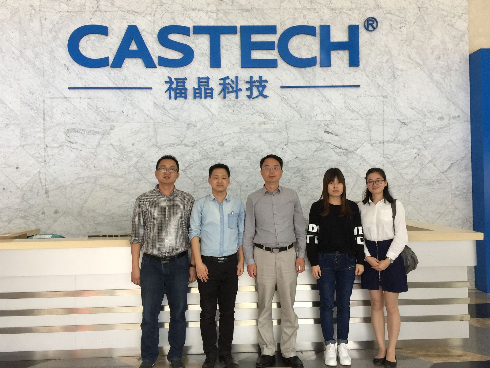福晶科技市場總監(jiān)張星(左三)等代表與訊石記者