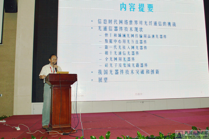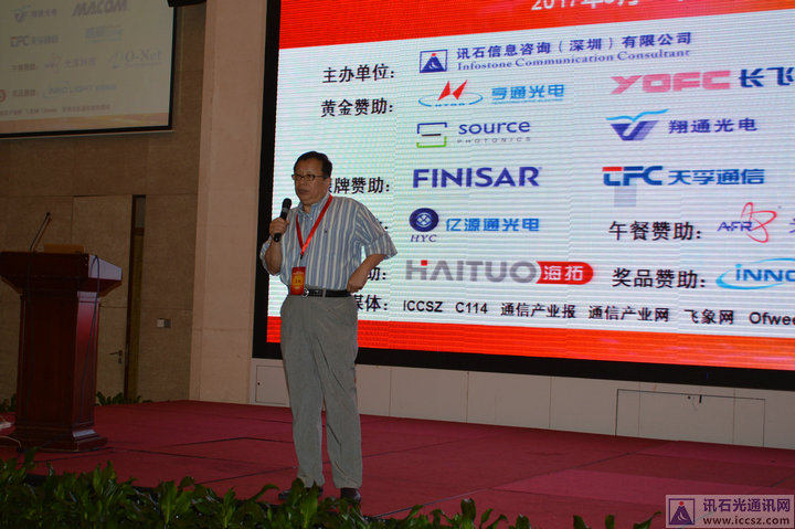 早上九點(diǎn),會(huì)議正式開(kāi)始。首先為大家?guī)?lái)演講的是訊石老朋友,來(lái)自上海交通大學(xué),也是IEEE終身高級(jí)會(huì)員的陳益新教授,陳教授此次演講主題為<<光通信器件的機(jī)遇和創(chuàng)新>>,陳老師談到信息時(shí)代網(wǎng)絡(luò)世界對(duì)光纖通信的挑戰(zhàn),人與物都處于數(shù)字化連接,全球經(jīng)濟(jì)結(jié)構(gòu)發(fā)生變化。我國(guó)光通信產(chǎn)業(yè)鏈的薄弱環(huán)節(jié)是光器件,光器件是新一代光網(wǎng)絡(luò)的關(guān)鍵,未來(lái)需要重點(diǎn)突破的是高端光器件。光器件的新挑戰(zhàn)將往更高速率、頻譜更寬、損耗更小、功耗更低、靈敏度更高、時(shí)延更短等方向發(fā)展。