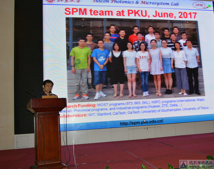 隨后為我們帶來(lái)精彩演講的是北京大學(xué)周治平教授,其演講主題為<<硅基光電子發(fā)展新進(jìn)程>>,硅基光電子繼承于微電子,來(lái)源于光電子,具有尺寸小、成本低、集成度高、多通道、大寬帶、高速率等特點(diǎn)。周教授為大家介紹硅基光電子國(guó)內(nèi)外建設(shè)平臺(tái),如國(guó)外喬治亞理工學(xué)院微電子研究中心CMOS研發(fā)平臺(tái),國(guó)內(nèi)IMECAS、SIMTAC平臺(tái)等。硅基光電子技術(shù)將往更高傳輸速率、更大規(guī)模片上集成、更多科研平臺(tái)建成上發(fā)展,而隨著越來(lái)越多廠商的加入,產(chǎn)業(yè)鏈更完善,覆蓋短途和長(zhǎng)距。