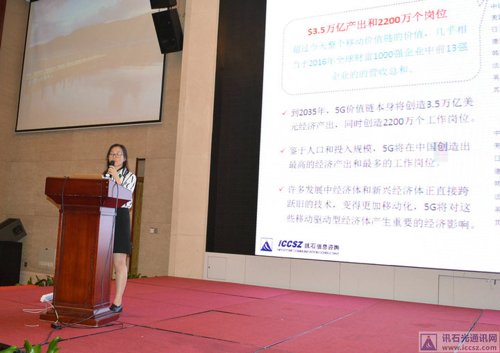5G已是行業(yè)熱點(diǎn),國(guó)家大力推進(jìn)5G建設(shè),運(yùn)營(yíng)商正與政府和企業(yè)進(jìn)行密切合作,不斷加大5G技術(shù)部署行程,據(jù)悉,中國(guó)有望在2025年前發(fā)展成為全球最大5G市場(chǎng)。訊石作為光通訊行業(yè)專(zhuān)業(yè)信息咨詢(xún)平臺(tái),致力提供準(zhǔn)確市場(chǎng)信息。訊石高級(jí)分析師吳娜在4號(hào)會(huì)議后階段,帶來(lái)了《全球及中國(guó)5G市場(chǎng)發(fā)展現(xiàn)狀及其給光通信帶來(lái)的機(jī)遇》分析演講。其講到:5G在2035年將在全球驅(qū)動(dòng)12萬(wàn)億美元經(jīng)濟(jì)活動(dòng),其中信息通信行業(yè)占第二大份額11.5%,中國(guó)5G網(wǎng)絡(luò)投資到2023年達(dá)到投資頂峰,之后緩慢下滑。物聯(lián)網(wǎng)(IoT)被認(rèn)為是驅(qū)動(dòng)5G發(fā)展的首要應(yīng)用驅(qū)動(dòng)力,2020年5G預(yù)計(jì)正式商用,部分運(yùn)營(yíng)商計(jì)劃提前商用時(shí)間至2019年。同時(shí)光網(wǎng)絡(luò)行業(yè)將是5G回程建設(shè)的主要受益者,5G時(shí)代光模塊和光纖光纜等需求量將是4G時(shí)代數(shù)倍。