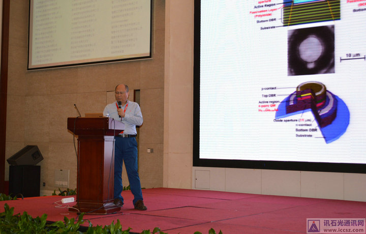 茶歇過(guò)后,來(lái)自高雄應(yīng)用科大的施天從教授帶來(lái)《有源光器件發(fā)展新契機(jī)》演講,施教授在光器件、光模塊電路、高頻信號(hào)傳輸?shù)阮I(lǐng)域經(jīng)驗(yàn)積累豐富,此次演講內(nèi)容涵括:外部調(diào)制器激光器(EML)、分布反饋激光器(DFB LD)、垂直腔面發(fā)射激光器(VCSEL)、低成本25- Gb/s TO-CAN封裝、非制冷400-Gbps(16×25-Gbps)光收發(fā)器等,施博士以其發(fā)布的三篇論文為在場(chǎng)嘉賓作出講解,并列舉NTT演示論證200Gb /s四級(jí)脈沖幅度調(diào)制EML,新飛通、索爾思光電、博通在100Gb/s pam4 EML方面獲得發(fā)展突破,AOI開(kāi)發(fā)56GB / s的四級(jí)脈沖幅度調(diào)制DFB等企業(yè)成功案例舉作實(shí)證說(shuō)明。