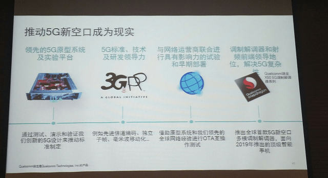 同時(shí),高通還發(fā)展多項(xiàng)關(guān)鍵的5G技術(shù)。在千兆級LTE、信道編碼、獨(dú)立子幀、毫米波移動(dòng)化、大規(guī)模MIMO等5G關(guān)鍵技術(shù)上都有相應(yīng)的研究和部署。和網(wǎng)絡(luò)運(yùn)營商聯(lián)合進(jìn)行具有影響力的試驗(yàn)和早期部署。此外還發(fā)布了全球首個(gè)5G NR多模調(diào)制解調(diào)器X50,為5G的商用奠定了基礎(chǔ)。