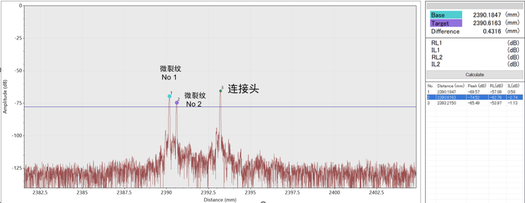 某數(shù)據(jù)中心光模塊出現(xiàn)性能異常,傳統(tǒng)方法無(wú)法定位問(wèn)題。使用SPA-110檢測(cè)后,在距離端口5.4227mm處發(fā)現(xiàn)微米故障,精準(zhǔn)定位故障點(diǎn)。