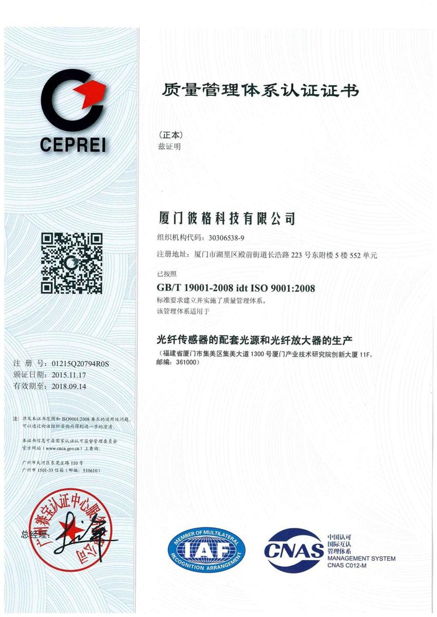 廈門彼格科技有限公司是一家集研發(fā)、生產(chǎn)、銷售一體的光通訊與光纖傳感高科技企業(yè),匯集國內(nèi)前沿科研機(jī)構(gòu)的技術(shù)骨干,具備豐富的技術(shù)研發(fā)和市場運(yùn)作經(jīng)驗(yàn),專注于為光纖傳感和光纖通訊提供專業(yè)的模塊和器件,包括光纖有源器件、光源和探測器產(chǎn)品、光纖放大器等系列產(chǎn)品。作為一家一流的器件商,彼格科技憑借夯實(shí)管理基礎(chǔ),不斷加強(qiáng)質(zhì)量體系建設(shè),通過ISO9001質(zhì)量管理體系認(rèn)證。