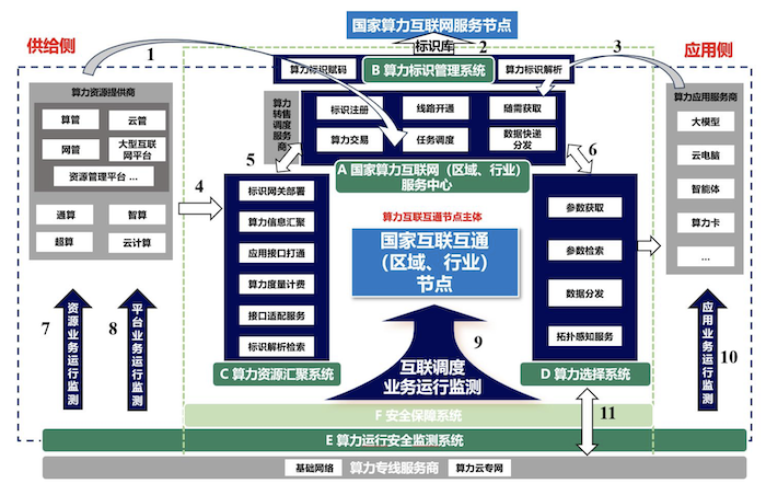 通知顯示,算力互聯(lián)互通節(jié)點采取“統(tǒng)一標識、統(tǒng)一標準、統(tǒng)一規(guī)則”的運行機制。標識方面,各節(jié)點通過國家節(jié)點獲取唯一標識編碼,實現(xiàn)算力資源入網(wǎng)入市。標準方面,各節(jié)點按照統(tǒng)一標準建設,統(tǒng)一接口對接,實現(xiàn)互聯(lián)互通。規(guī)則方面,各類算力資源按照統(tǒng)一規(guī)則開展算力交易、互聯(lián)調度等工作。