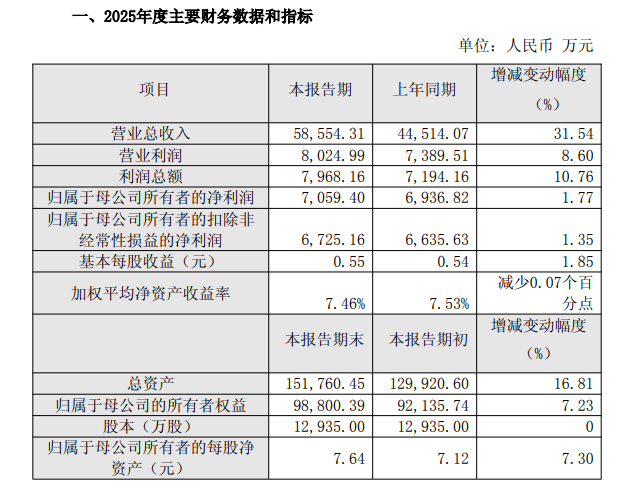 ICC訊 2月28日,騰景科技股份有限公司發(fā)布2025年度業(yè)績(jī)快報(bào)。報(bào)告期內(nèi),公司實(shí)現(xiàn)營(yíng)業(yè)總收入5.86億元,同比增長(zhǎng)31.54%;實(shí)現(xiàn)歸屬于母公司所有者的凈利潤(rùn)7059.4萬(wàn)元,同比增長(zhǎng)1.77%。