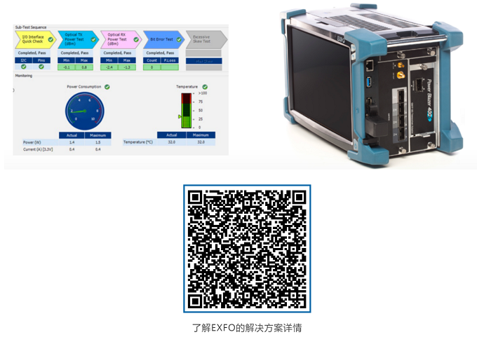 CMIS 演示將展示符合 CMIS 要求的模塊和 EXFO 的 FTBx-88460 測(cè)試儀之間的互通性,后者采用新穎的開(kāi)放式光模塊系統(tǒng)。EXFO的 iOptics 用于測(cè)試符合要求的被測(cè)模塊性能。