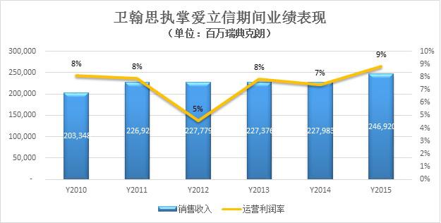 衛(wèi)翰思于2010年1月1日正式就任愛立信CEO,到2016年為止共發(fā)布過6次年報,從這6份年報披露的公司財務(wù)數(shù)據(jù)來看,在衛(wèi)翰思執(zhí)掌愛立信的6年多時間里,其創(chuàng)造的業(yè)績實在是差強人意:銷售收入在6年間僅增長了20%,且始終在2000億到2500億瑞典克朗(約300億美元)間徘徊,而運營利潤率則一直低于10%?! ?/p>