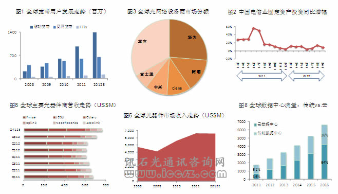 2012年,全球宏觀經(jīng)濟(jì)的不確定性仍在影響光通信市場(chǎng)。服務(wù)供應(yīng)商對(duì)光網(wǎng)絡(luò)的投資仍然謹(jǐn)慎,所以盡管年初時(shí)運(yùn)營(yíng)商公布的全年資本開支預(yù)算相比2011年有不小幅度增長(zhǎng),但實(shí)際投資卻在放緩。