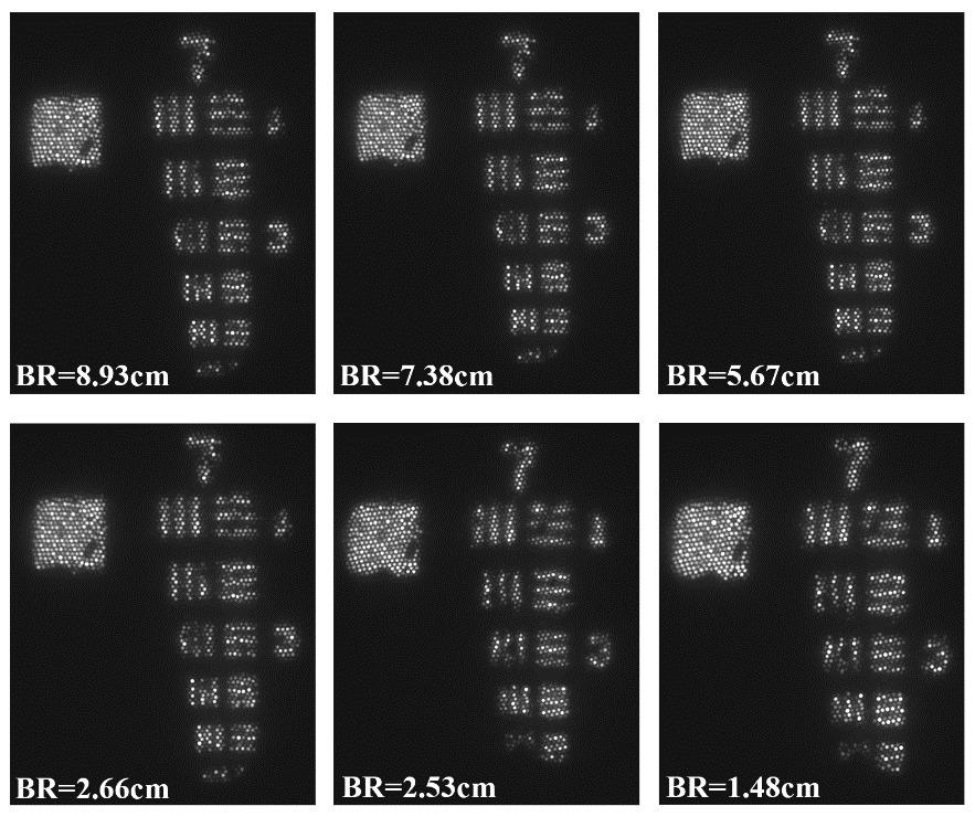 圖3 不同彎曲半徑下成像效果