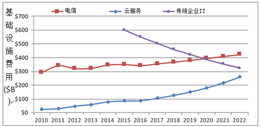 Iccsz訊 康寧光通信企業(yè)網(wǎng)亞太區(qū)市場(chǎng)經(jīng)理馬銳對(duì)IT服務(wù)數(shù)據(jù)中心的設(shè)計(jì)進(jìn)行了淺析,隨著云計(jì)算技術(shù)安全性穩(wěn)定性的大幅提高,越來越多的企業(yè)開始使用第三方云服務(wù)來處理各種數(shù)據(jù)業(yè)務(wù)需求。因此,云服務(wù)對(duì)網(wǎng)絡(luò)基礎(chǔ)設(shè)施的投入在未來幾年將會(huì)迅速增加,成為數(shù)據(jù)中心市場(chǎng)發(fā)展的主要驅(qū)動(dòng)力。相比較而言,傳統(tǒng)企業(yè)IT基礎(chǔ)設(shè)施費(fèi)用則呈現(xiàn)出逐年下降的趨勢(shì)(如圖1所示)。