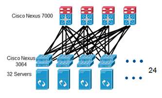 (10G網(wǎng)絡(luò),4個(gè)脊交換機(jī),48個(gè)葉交換機(jī),每個(gè)葉交換機(jī)帶32個(gè)服務(wù)器,收斂比1:1。)