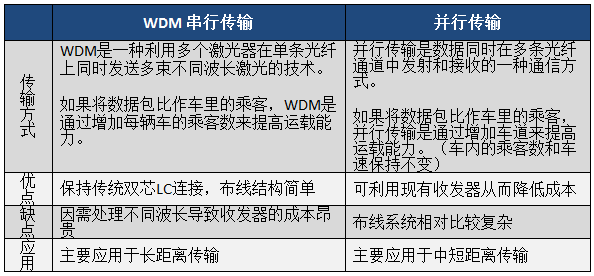表2. WDM串行傳輸與并行傳輸方式的對(duì)比