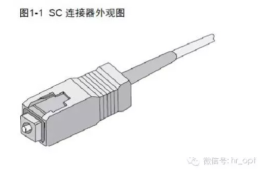 SC(Subscriber Connector Standard Connector,標(biāo)準(zhǔn)光纖連接器),由日本NTT公司開發(fā)的模塑插拔耦合式連接器。其外殼采用模塑工藝,用鑄模玻璃纖維塑料制成,呈矩形;插針由精密 陶瓷制成,耦合套筒為金屬開縫套管結(jié)構(gòu)。緊固方式采用插拔銷式,不需要旋轉(zhuǎn)。外觀圖如下所示