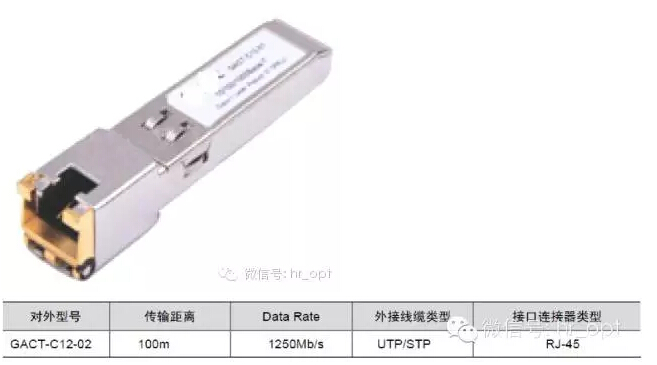 電口模塊,即Copper SFP,SFP封裝,電口模塊,100米可支持最大傳輸距離 100m(RJ45,5類雙絞線為傳輸介質(zhì))。