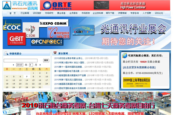 展會信息專欄是在原來展會欄目的基礎(chǔ)上,重新進(jìn)行頁面設(shè)計和功能添加,改版后的展會欄目頁面清新直觀,最新收錄的2010年近百場光通信相關(guān)行業(yè)展會信息,分類詳細(xì),多種查詢方法更便捷,希望為廣大行業(yè)客戶提供幫助!