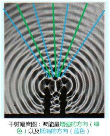 智能天線陣列原理并不復(fù)雜。當(dāng)由兩個(gè)波源產(chǎn)生的兩列波互相干涉時(shí),有的方向兩列波互相增強(qiáng),而有的方向兩列波正好抵消(如下圖)。
