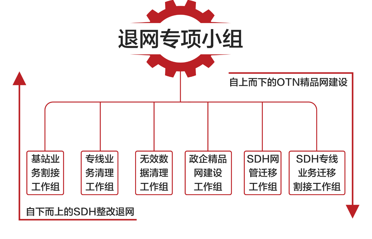 韶關(guān)移動(dòng)成立了退網(wǎng)專項(xiàng)小組,自上而下建設(shè)OTN精品網(wǎng),自下而上進(jìn)行SDH整改退網(wǎng),上下結(jié)合高效退網(wǎng)。