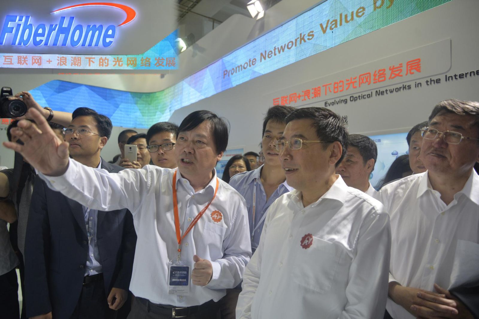 9月22日,2015年中國國際通信展覽會暨ICT中國高層論壇開幕,工信部部長苗圩、三大運營商高層、中國貿(mào)易促進會和中國通信企業(yè)協(xié)會領(lǐng)導(dǎo)出席開幕式,烽火科技集團董事長童國華出席開幕式和高層論壇。9月22日上午,工業(yè)和信息化部部長苗圩、總工程師張峰來到烽火科技展臺參觀視察,在童國華董事長的陪同下了解了烽火科技科技創(chuàng)新動態(tài)和今年的發(fā)展情況。