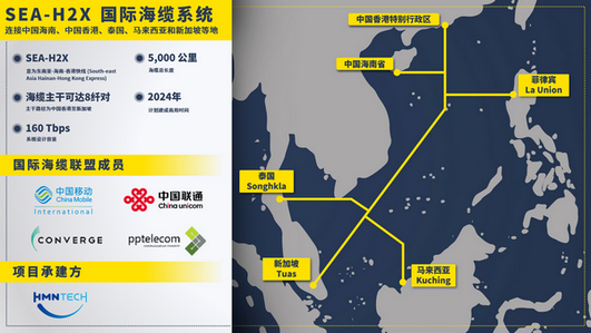 2022年5月12日 —— 中國(guó)移動(dòng)國(guó)際有限公司(CMI)、中國(guó)聯(lián)通國(guó)際有限公司(CUG)、Converge Information and Communications Technology Solutions, Inc.(Converge)以及 PPTEL SEA H2X Sdn. Bhd (PPTEL SEA H2X) 近日共同宣布計(jì)劃合作鋪設(shè)SEA-H2X國(guó)際海纜系統(tǒng),為亞洲及全球數(shù)字化轉(zhuǎn)型擴(kuò)容提速。SEA-H2X由國(guó)際海纜聯(lián)盟成員共同運(yùn)營(yíng),由華海通信技術(shù)有限公司(HMN Tech)承建。SEA-H2X將連接中國(guó)海南、中國(guó)香港、菲律賓、泰國(guó)、馬來(lái)西亞及新加坡等地,進(jìn)一步可延伸至越南、柬埔寨以及印度尼西亞,建成后將極大提升亞洲區(qū)域內(nèi)的網(wǎng)絡(luò)連接性。