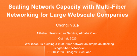 如光纖通信之父、諾貝爾獎得主高錕所說,光纖是大容量數(shù)據(jù)傳輸?shù)淖罴鸭夹g(shù)。隨著信息社會和數(shù)字經(jīng)濟對數(shù)據(jù)需求量的快速增長,單根光纖的容量已經(jīng)遠遠滿足不了網(wǎng)絡(luò)的需求。今年ECOC設(shè)置了專門workshop “Is building a multi-fiber network as simple as stacking single-fiber networks?”來討論如何實現(xiàn)高效的多光纖網(wǎng)絡(luò)。在這個workshop上,阿里云基礎(chǔ)設(shè)施網(wǎng)絡(luò)團隊做了題為“Scaling Network Capacity with Multi-Fiber Networking for Large Webscale Companies”的報告。在該報告中,阿里云指出C+L波段技術(shù)將首先被大型互聯(lián)網(wǎng)公司采用來提升光傳輸網(wǎng)的容量,進一步提升網(wǎng)絡(luò)容量將會采用多光纖網(wǎng)絡(luò),但多光纖網(wǎng)絡(luò)不是多個單光纖網(wǎng)絡(luò)的簡單組合,多光纖網(wǎng)絡(luò)需要結(jié)合網(wǎng)絡(luò)管理技術(shù)、空間和頻率組合路由交換技術(shù)來實現(xiàn)網(wǎng)絡(luò)效率的最大化。