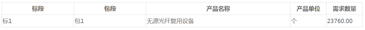 標(biāo)包1/標(biāo)段1名稱:安徽移動(dòng)2018-2020年度無(wú)源光纖擴(kuò)展設(shè)備選型采購(gòu)