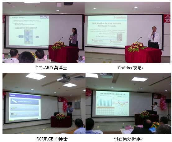 在今年上半年光通訊產(chǎn)業(yè)持續(xù)火紅的背景之下,每年一屆的訊石光纖通訊市場暨技術(shù)專題研討會如期在9月4日深圳成功舉辦。與會人員多達120多人,近80多家企業(yè)的高層出席。本次研討會共有8位老師演講,選題涉及三網(wǎng)融合,寬帶光網(wǎng)絡(luò),WSS,ROADM,光收發(fā)模塊,集成光器件,光傳輸解決方案以及全球光通訊市場現(xiàn)狀分析及預測。在各位老師演講結(jié)束后,與會者進行了長達2個小時的討論會,對光通訊當前熱點問題提出各自疑問與見解.很多與會者表示,通過參加會議開拓了眼界,啟迪了思維,學到了知識,會議舉辦得很成功.