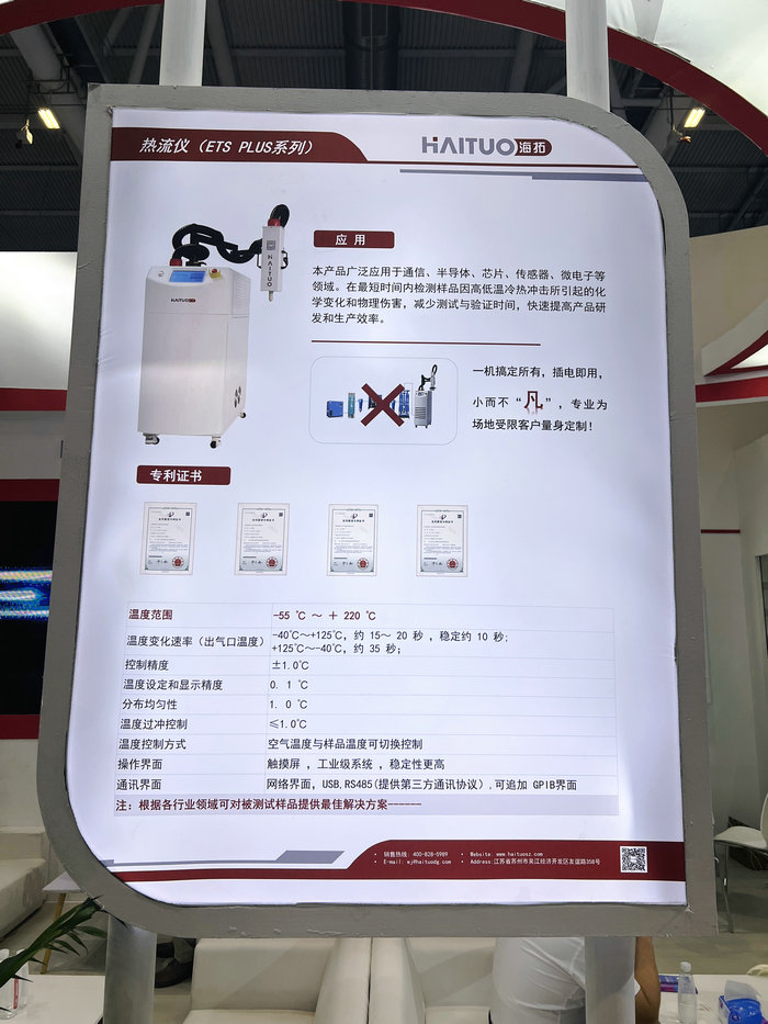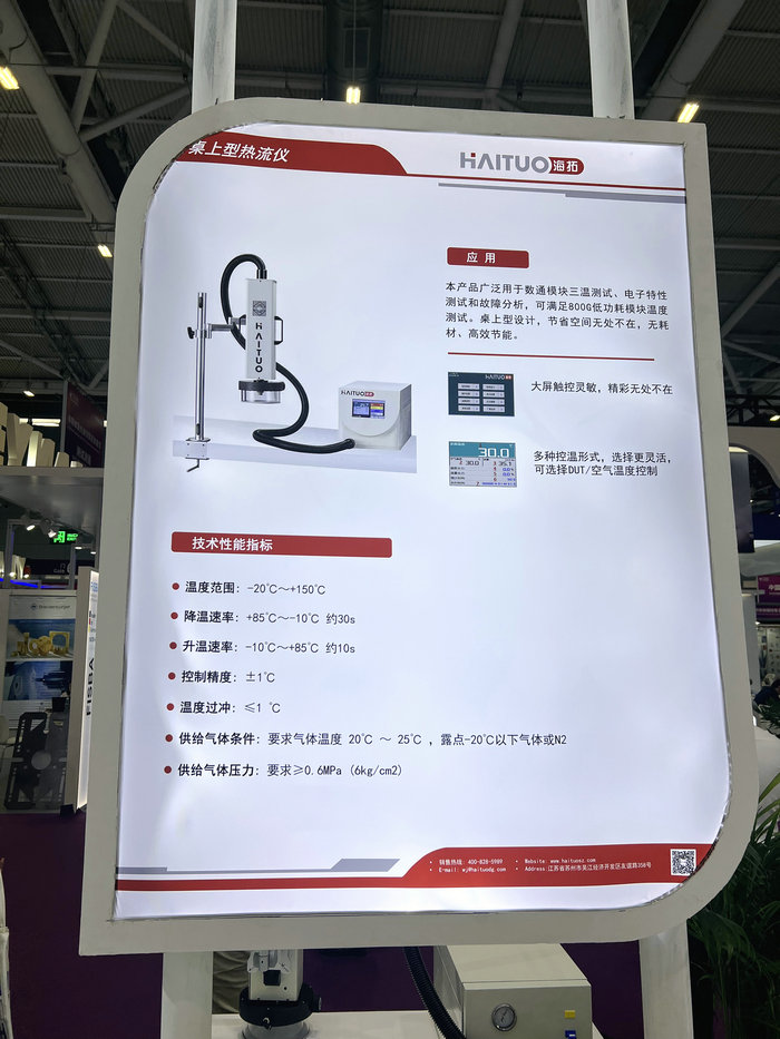 張總進(jìn)一步介紹,桌上型熱流儀可以幫助研發(fā)人員擺脫場(chǎng)地限制,或熱流儀空壓機(jī)安裝困難的問題,可以集成空壓機(jī),具有體積小巧、插電即用的優(yōu)勢(shì)。為響應(yīng)國(guó)家“節(jié)能減排”的號(hào)召,海拓儀器提前布局節(jié)能產(chǎn)品,針對(duì)低碳的要求進(jìn)行了優(yōu)化升級(jí),例如選用低GWP值的制冷劑。