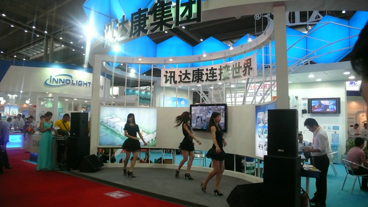 訊達(dá)康公司的展臺(tái)把實(shí)際應(yīng)用搬到了展會(huì)現(xiàn)場(chǎng),產(chǎn)品一放上去馬上能用。展臺(tái)的另一側(cè)則是靚麗模特在展示產(chǎn)品,而后的勁舞及有獎(jiǎng)問(wèn)答現(xiàn)場(chǎng)更是吸引了眾多人氣。