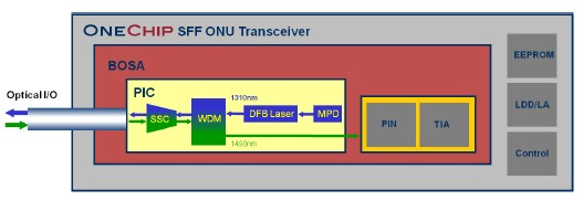 最近幾年一直參展光博會(huì)的加拿大光子集成技術(shù)公司OneChip再次引起了中國(guó)光通信廠商的密切關(guān)注。該公司將PIC光子集成技術(shù)用于制造光模塊,在本屆光博會(huì)上,該公司宣布使用光子集成技術(shù)制造的PON模塊已經(jīng)量產(chǎn),而且選擇了偉創(chuàng)力和Fabrinet兩家代工大廠為他們代工,另外,廣東東研網(wǎng)絡(luò)和深圳澤萬(wàn)豐兩家中國(guó)公司依客戶(hù)區(qū)分代理銷(xiāo)售。