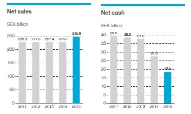 對于愛立信來說,作為業(yè)內(nèi)發(fā)展最為穩(wěn)定的傳統(tǒng)通信廠商,其在行業(yè)市場和通信技術(shù)上長年的積累與沉淀是最大的競爭優(yōu)勢;而從下圖所示其5年?duì)I業(yè)收入的四平八穩(wěn)表現(xiàn)來看,一直號稱在做轉(zhuǎn)型的愛立信還是沒有找到增長的引擎,但持續(xù)下降的現(xiàn)金流還能為其為尋找新的業(yè)務(wù)增長點(diǎn)而做的投資提供多長時(shí)間的支持,將是未來愛立信面臨的最大挑戰(zhàn)之一。