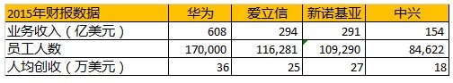 還有,坐擁17萬員工的華為也是五大通信廠商中員工人數(shù)最為龐大的公司,在2015年其人均薪酬已經(jīng)達(dá)到人均7.7萬美元,是中興的2.5倍,也遠(yuǎn)超愛立信和諾基亞這些歐洲公司。