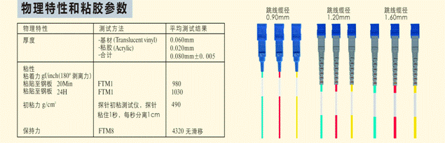 JN-428線纜標簽材料,基于B-427材料(極限卷貼纜徑Ф1.40mm) 的特性進行改進,改良后,標簽極限卷貼線纜徑可達Ф0.90mm。經(jīng)過高低溫循環(huán)測試,分別設(shè)定冷熱循環(huán)箱-40°C ~70°C冷熱沖擊 (加熱速率為2°C/min ,冷卻速率2°C/min,冷沖30分鐘,熱沖30分鐘,高低溫循環(huán)72小時)測試后,不彈開,不翹標。此款線纜標簽材料已大量使用于線纜、跳線,纏繞式貼標,性能穩(wěn)定優(yōu)異,已得到廣大客戶的認可。