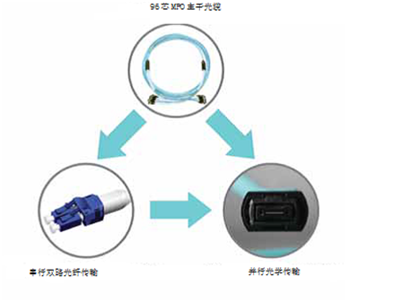 現(xiàn)有和新興的網(wǎng)絡(luò)技術(shù)推動(dòng)數(shù)據(jù)中心中增加數(shù)據(jù)傳輸速率和光纖使用的需要。高密度光學(xué)連接解決方案是應(yīng)對(duì)這些趨勢(shì)必要的解決方案,不但可以充分利用光纜管理和數(shù)據(jù)中心使用面積,而且可以簡單的從雙芯串行傳輸遷移到12和24芯并行光學(xué)傳輸。OM3/OM4光學(xué)連接解決方案已做好準(zhǔn)備迎接這些挑戰(zhàn)。