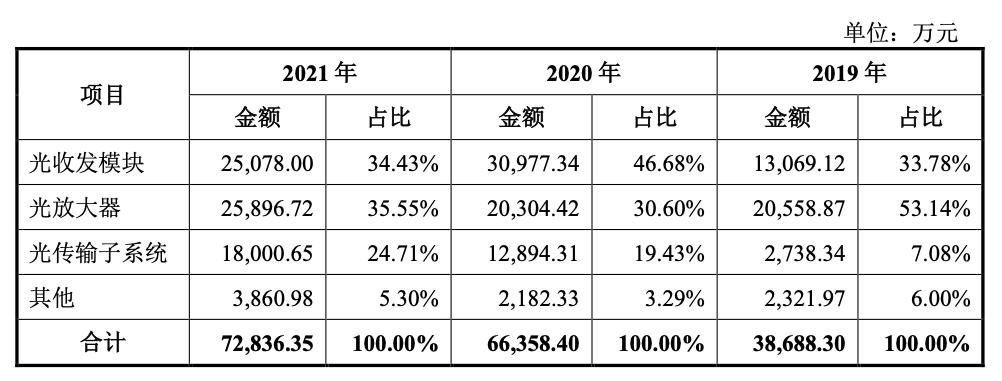 2021年,德科立光收發(fā)模塊、光放大器、光傳輸子系統(tǒng)三大核心業(yè)務(wù)收入占比分別為34.43%、35.55%和24.71%,呈現(xiàn)齊頭并進(jìn)的良好態(tài)勢(shì)。而核心業(yè)務(wù)的持續(xù)發(fā)展推動(dòng)了公司收入規(guī)模的快速增長(zhǎng),2019-2021年公司營(yíng)收分別為3.87億元、6.65億元和7.31億元,復(fù)合增速近40%。未來(lái),隨著光通信行業(yè)尤其是光電子器件市場(chǎng)的擴(kuò)大,德科立的市場(chǎng)空間將加速擴(kuò)容,其成長(zhǎng)屬性有望被進(jìn)一步激發(fā)。