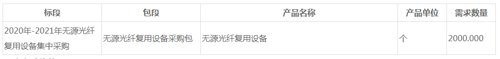 根據(jù)此前招標(biāo)公告顯示,該項(xiàng)目為集中招標(biāo)項(xiàng)目,預(yù)估含稅總金額為11,426,560元,擬采購(gòu)無(wú)源光纖復(fù)用設(shè)備的3個(gè)標(biāo)準(zhǔn)模型見(jiàn)下表: