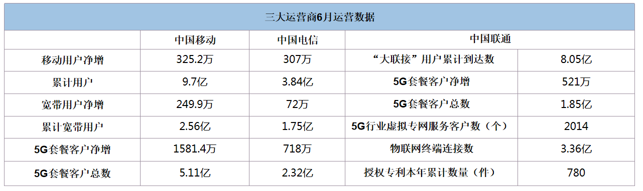 中國移動6月移動用戶數(shù)增加325.2萬戶。累計達(dá)9.7億。寬帶方面,用戶數(shù)增加249.9萬戶,累計寬帶用戶達(dá)2.56億。