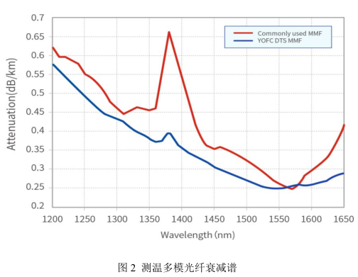 由于多模光纖的拉曼增益高、受激閾值高,因此成熟的分布式測溫產(chǎn)品多采用多模光纖作為傳感光纖。但傳統(tǒng)的通信多模光纖僅優(yōu)化了波長850nm和1300nm處的衰減,較高的C波段衰減嚴重影響了長距離測量的信噪比,另一方面較大的模間色散會造成長距離測試下空間分辨率的劣化。此外,普通多模光纖因其幾何一致性較差,會導致接續(xù)點測得的溫度出現(xiàn)跳變。