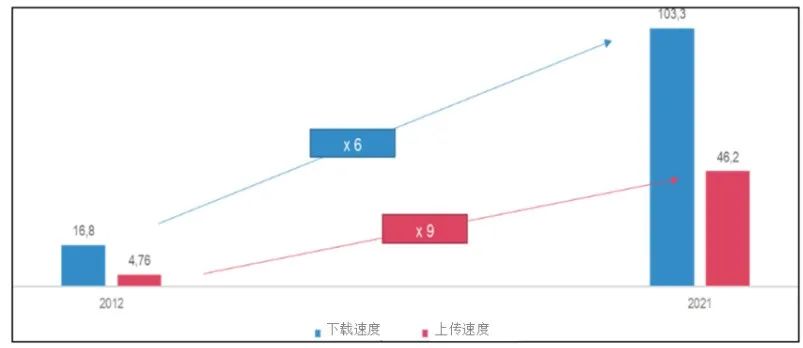 在過去的十年里,數(shù)據(jù)傳輸速率飛速增長。隨著在線視頻和云游戲業(yè)務(wù)的影響不斷擴(kuò)大,網(wǎng)絡(luò)下行速率已經(jīng)增長了6倍,上行平均速率甚至增長高達(dá)10倍。