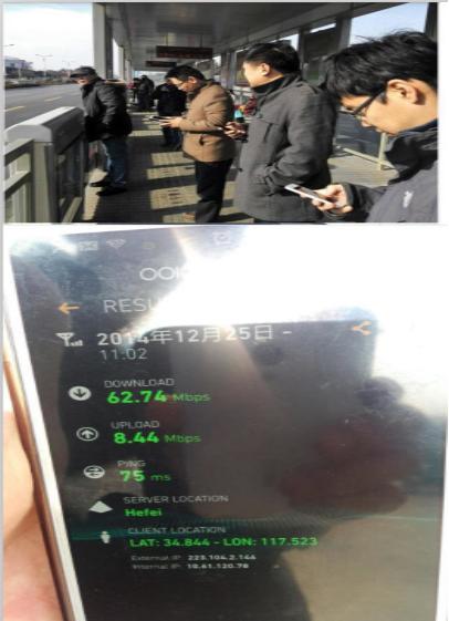 中午,記者在位于棗莊市區(qū)客流量最大的BRT換乘樞紐進(jìn)行4G業(yè)務(wù)體驗(yàn)。時值中午下班高峰,大量乘客同時移動上網(wǎng),在此情況下實(shí)測網(wǎng)絡(luò)下行速度超過62M,體現(xiàn)出了4G超高的帶寬承載量!