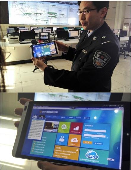 25日下午,記者們在棗莊市公安局訪問了基于移動4G網(wǎng)絡(luò)的“警務(wù)通”系統(tǒng)(該系統(tǒng)是為方便公安民警執(zhí)行移動警務(wù)所建立的信息管理系統(tǒng),又稱移動警務(wù)系統(tǒng))。一線民警通過平板電腦就能實(shí)現(xiàn)與公安資料庫的實(shí)時數(shù)據(jù)傳輸,大大提高了現(xiàn)場辦案效率。據(jù)現(xiàn)場民警講,通過“警務(wù)千度”搜索,還可以現(xiàn)場進(jìn)行人員、車輛信息查詢,“真的太方便啦!”。