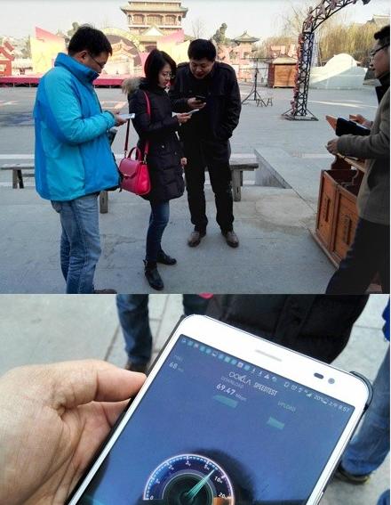 12月25日,記者們在全國首個實(shí)現(xiàn)4G網(wǎng)絡(luò)無縫全覆蓋的景區(qū)——棗莊臺兒莊古城景區(qū)進(jìn)行體驗(yàn)活動,現(xiàn)場實(shí)測網(wǎng)速下行超過69M!